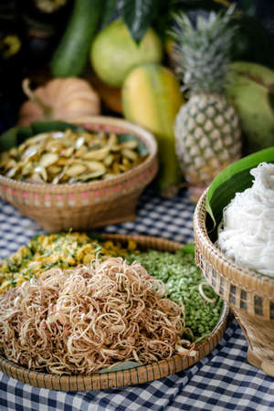 Kanchanaburi - Thailand - Oct 5, 2018: Thai dessert in Mallika city, which is a city imitates ancient Thai dynasty