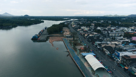 Aerial view of a port in Penang. Penang, Malaysia