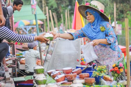 KHLONG HAE, HAT YAI, THAILAND - MARCH 23, 2012: The atmosphere around the popular floating market in Thailand.