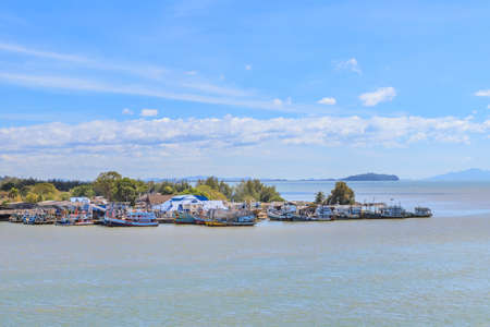 Chanthaburi, Thailand - December 30, 2017: Fisherman village at Pak Nam Laem Sing, one of famous source of seafood.