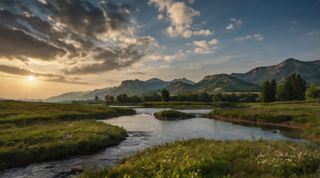 Sunny landscape with river