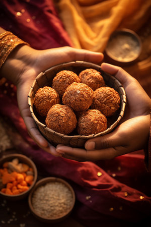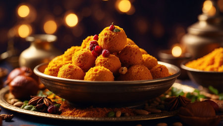 Festive dishes for the holiday of Diwali, created with Generative AI technology.