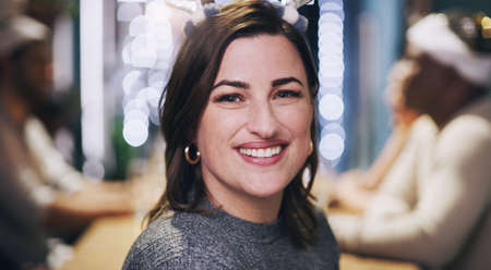 A young woman sitting in a cafe looking thoughtful and relaxed