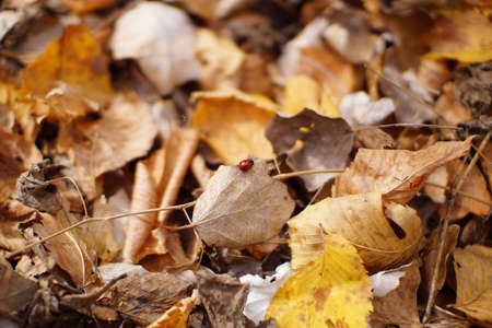 Ladybird on an autumn leaf