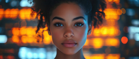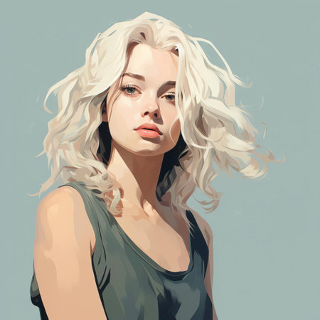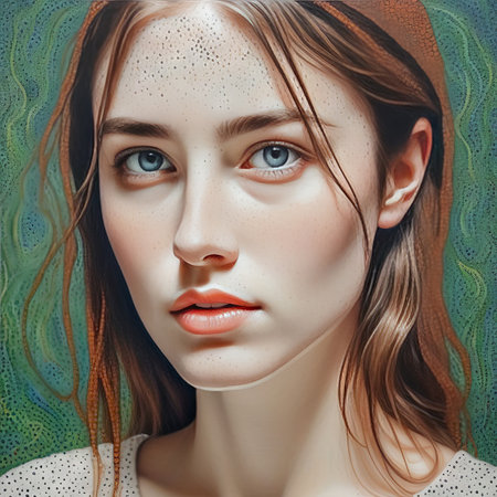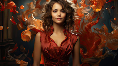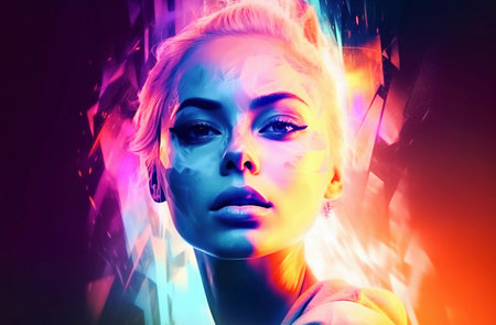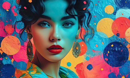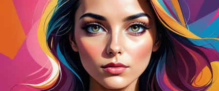 a woman's portrait, set against a flat colourful background, showcases her vibrant personality, with a simple yet striking close-up composition, highlighting her facial features in full colour, without any outlines, creating a stunning visual effect. ai generated