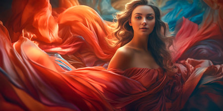 Portrait of a beautiful young woman with flying fabric. beauty, fashion.