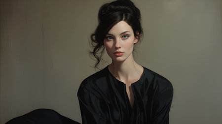 Monochromatic beauty, a stunning portrait blending classic elegance with modern design. Perfect for artistic inspiration or chic decor. Embrace the fusion of tradition and trend. Generated A.I.
