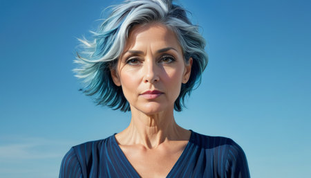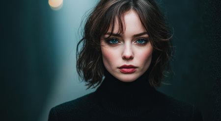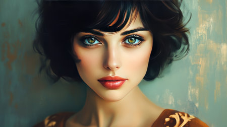 A portrait of a woman with vibrant eyes and a stylish haircut, highlighting her chic look and confident personality.