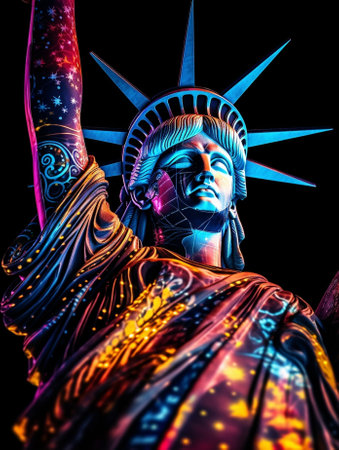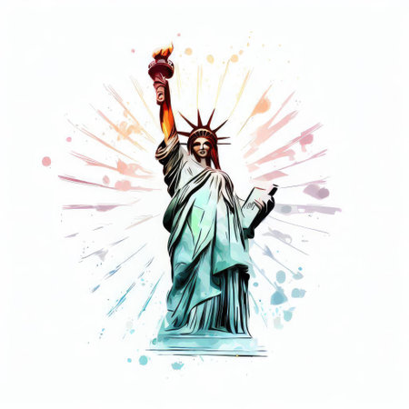 A colorful image of the majestic Statue of Liberty - a cult landmark of New York, personifying the spirit of freedom. illustration created by Generative AI