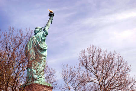 The famous Statue of Liberty of the Big Apple and Manhattan seen from the back, a monument known as the lady of New York all over the world.