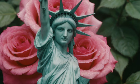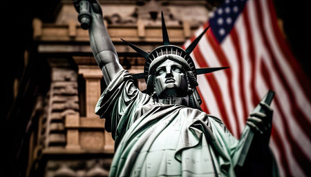 Captivating images of the iconic Statue of Liberty and the American flag are powerful symbols of freedom, democracy and hope, embodying the spirit of America and its values. illustration created by Generative AI