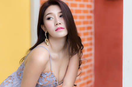 asia young woman wearing modern dress posing on outdoors