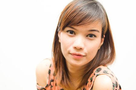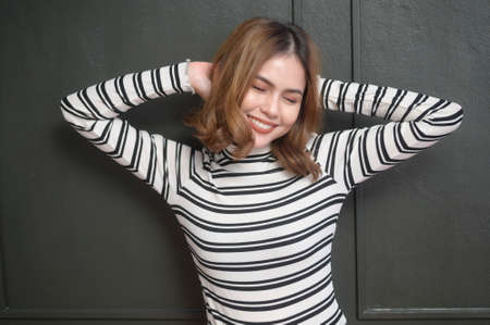 Portrait of Beautiful Attractive Asian woman smile feeling so happiness and comfortable,Beauty Concept
