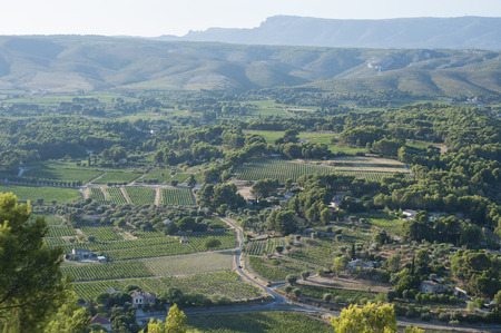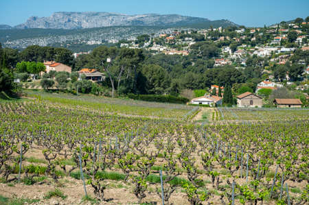 Vineyards of Cotes de Provence in spring, Bandol wine region near Le Castellet village, wine making in South of France