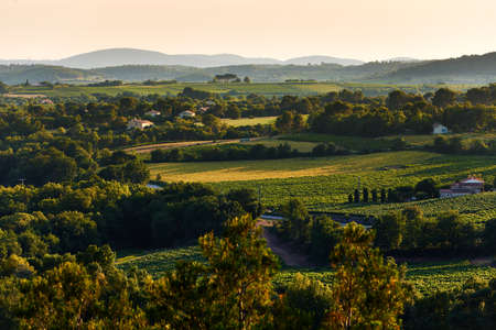 Typical French Provence rural landscape in summer at sunset