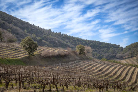 Landscape of vineyards in the Penedes vine zone, Catalonia, Spain.