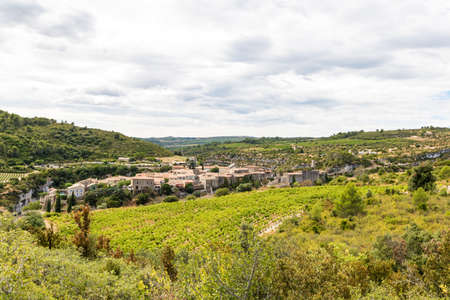 View of the medieval village of Minerve and the Gorges du Brian (Occitanie, France)