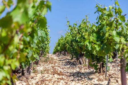 Winemaking in France, well-groomed fields, in which rows grows grapes
