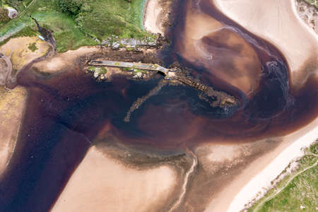 Aerial of the mouth of the Fintragh river at Fintra beach by Killybegs, County Donegal, Ireland