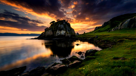 Beautiful scenic landscape of Scotland nature with beautiful evening sun set sky