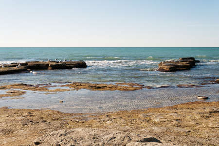Beautiful view of the sea or ocean and rocky coast. Natural landscape