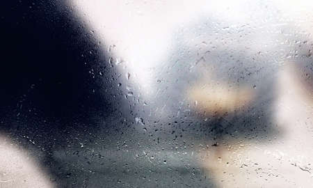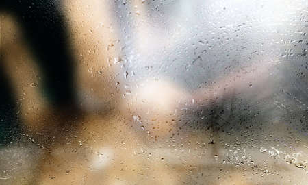 Condensation on the window. Raindrops on the glass. Blurred background.