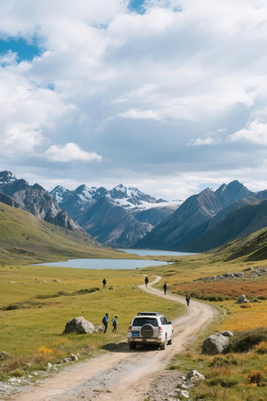 View on Kol-suu lake in Naryn Region Kyrgzstan. High quality photo