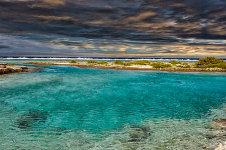 Maldive islands rock bay with ocean waves