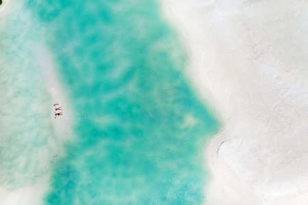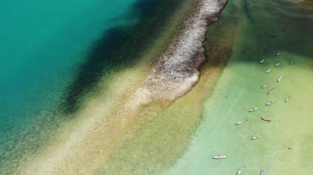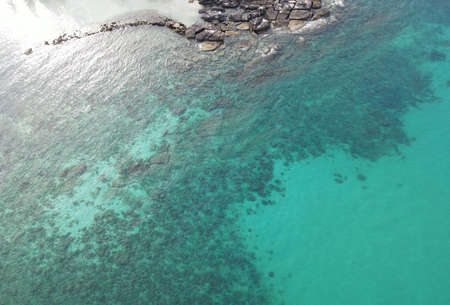 aerial drone view from the top with azure sea water with a seaweed, vacation travel concept
