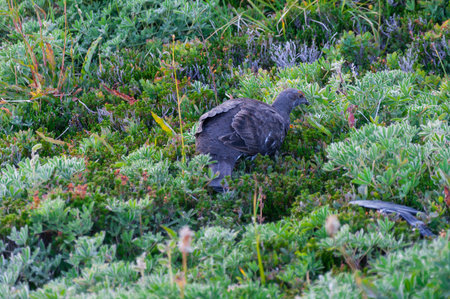 The rock ptarmigan (Lagopus muta japonica) is a medium-sized game bird in the grouse family. This photo was taken in Japan.