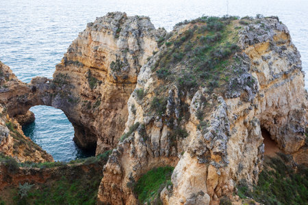 Rocky formations with arch bridge from Ponta da Piedade near Lagos (Portugal)
