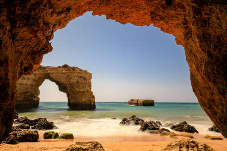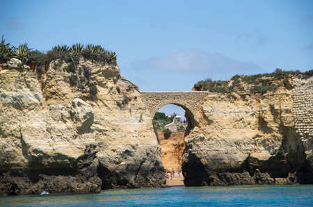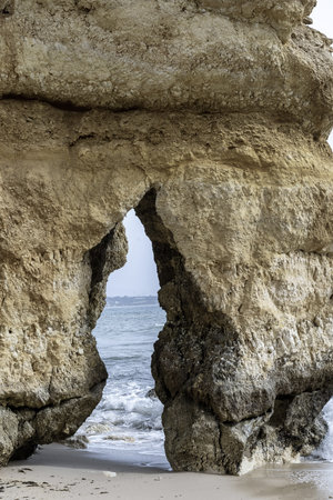 Arch of rocky cliff at Praia Dona Ana near Lagos city, Portugal.
