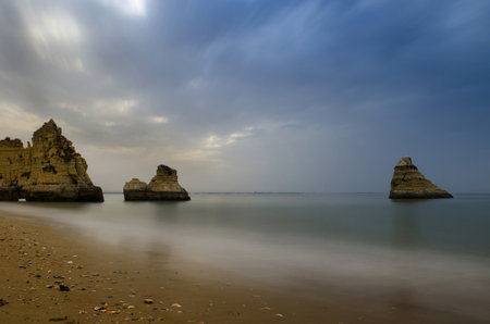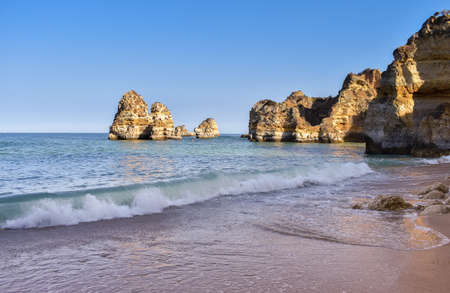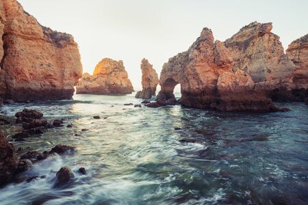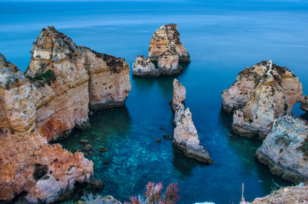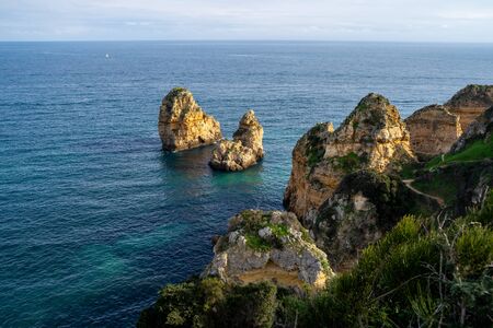A beautiful view of sea rocks on the coast in Lagos, Algarve, Portugal
