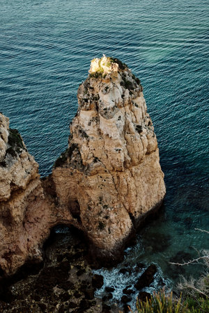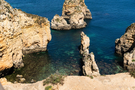 Ponta da Piedade cliffs near Lagos, Portugal. Beautiful seascape with natural rock formations in the Algarve, Portugal
