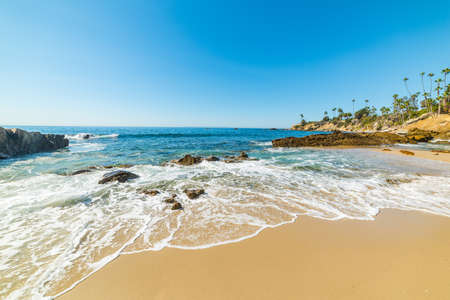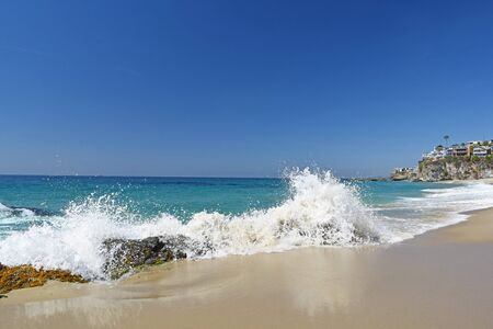 Beach Laguna Beach California USA. Waves in the Pacific Ocean at Victoria Beach in Laguna Beach California