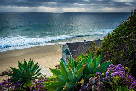 Garden and house overlooking the Pacific Ocean, in Laguna Beach, California.