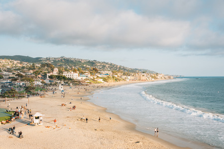 LAGUNA BEACH, CA - JULY 31, 2017: Tourists visit city beach on a beautiful summer day. Laguna Beach is a tourist attraction in California.