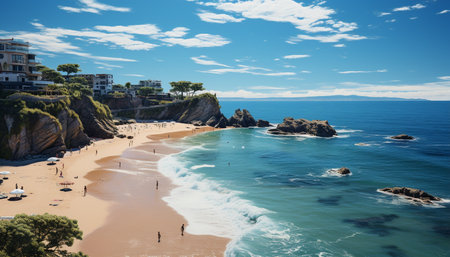Coastline, nature, cliff, landscape, wave, water, sand, summer, travel, rock generated by artificial intelligence