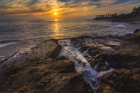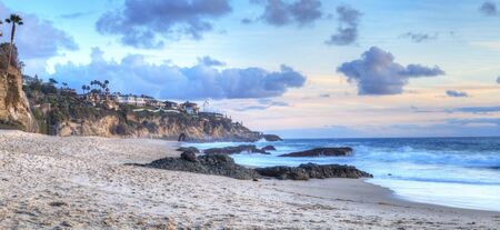 Beach cove at sunset in Laguna Beach, Southern California at the end of summer