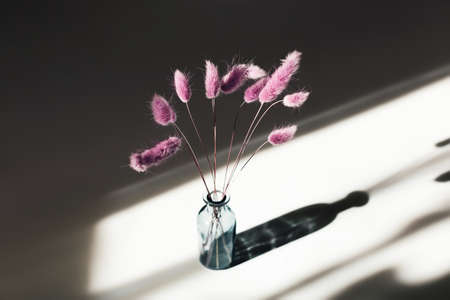 Dry pink flowers bunny tails in vase closeup