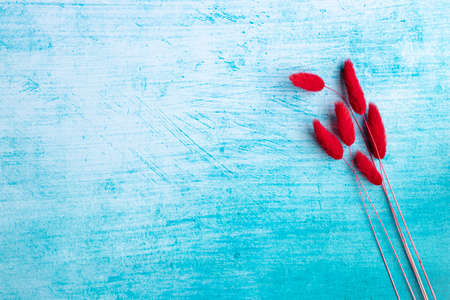 Pampas grass of red color on aquamarine blue