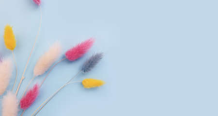 Hare's tail (Lagurus ovatus). Multicolored dry flowers. For bouquet arrangements and crafts. For floristry, decoration, hand-made. Minimalism concept. Space for text on the right.