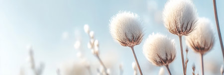 Fluffy plants in the meadow in the early morning