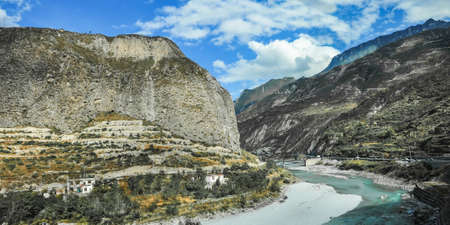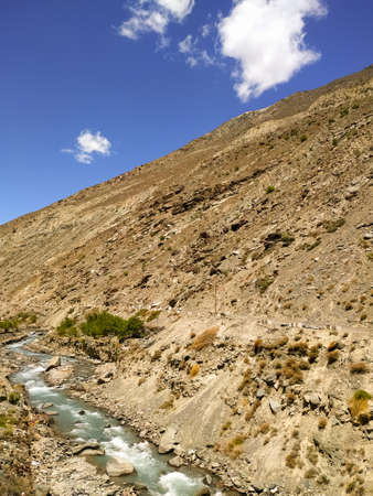 Mountain River in Gilgit Baltistan Highlands under the Blue and Cloudy Sky, Pakistan