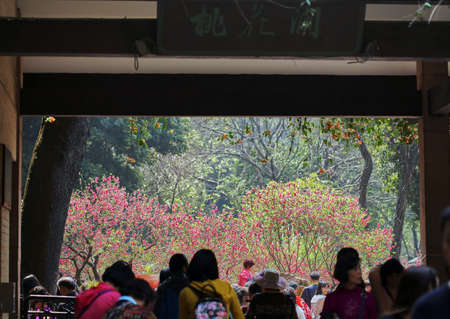 The peach blossom, tourists visit