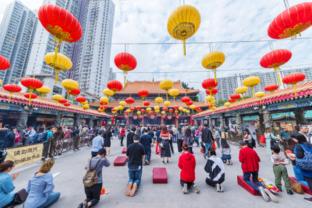 Hong Kong, China - March 01, 2018 : Tourist visiting Wong Tai Sin Temple in Kowloon in Hong Kong city