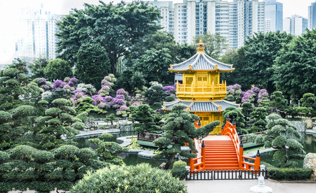 HONG KONG , HONG KONG : JANUARY 5, 2017: Golden Pavilion on JANUARY 5,2017 at Nan Lian Garden in Hong Kong.