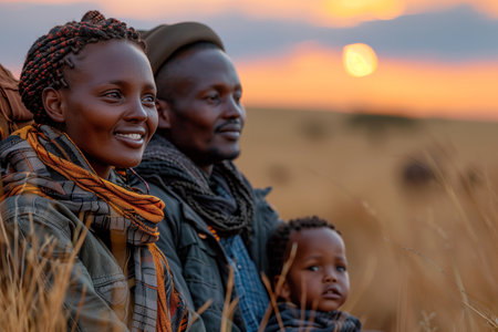 Family Enjoying a Beautiful Sunset Together in the African Savanna