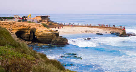 Beachgoers enjoying a beautiful sunny afternoon at La Jolla Cove in San Diego, CA. USA. Famous tourist destination.