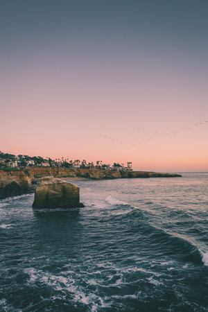 Sunset Cliffs with Pelicans in San Diego